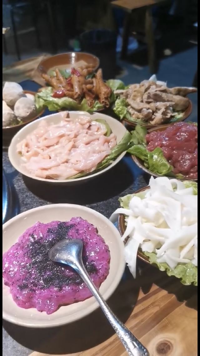 虽然略显得简陋,但是重庆那都不缺好火锅 推荐手打火龙果鱼籽虾滑;牛杂拼盘半斤;毛肚;鸭血;红汤九宫格锅底;鲜鸭肠;火龙果虾滑;酸梅汤;酥肉;麻辣牛肉