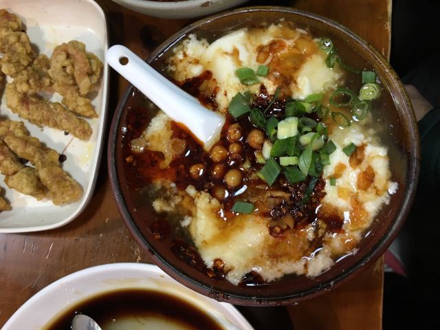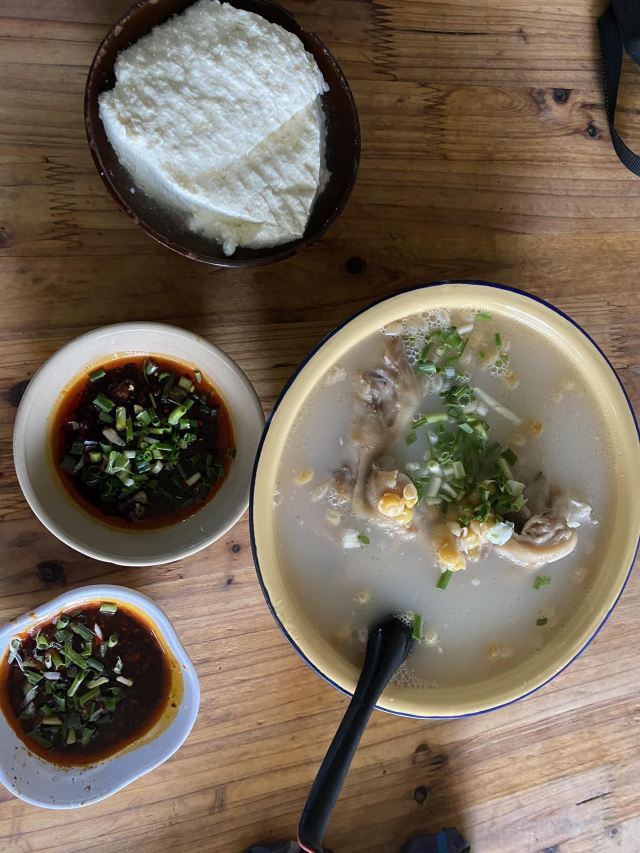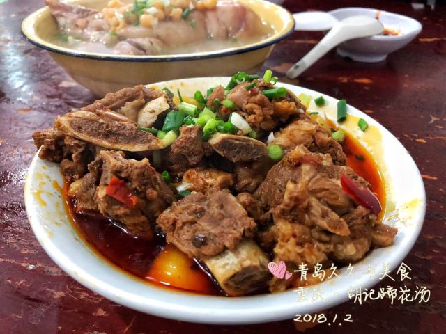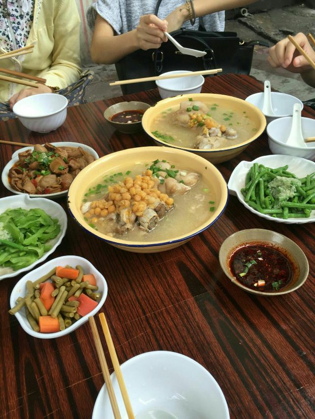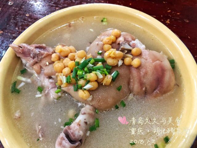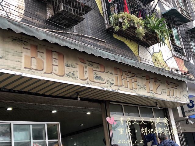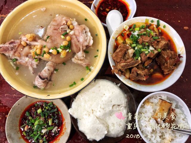 Hu Ji TiHua Tang#重庆游# 去四川美院, 去看涂鸦墙, 不知道吃什么, 定位周边… 发现这里有一家不错的店。 我本身就喜欢喝汤, 所以进去试一下, 人很多呀…… 点的蹄花汤,红烧排骨,豆花。 其实2人吃点的有点多。 蹄花汤里的蹄子很大, 味道就是原汁原味, 稍微加了一下盐。 蹄子煮的很软糯,入口即化, 特别好吃,里面还加了黄豆。 红烧排骨一般。 豆花就是尝了一下。 蹄花汤真的挺好喝的。