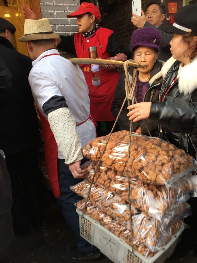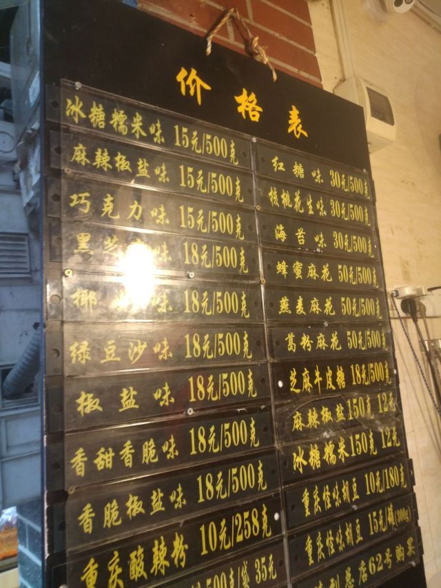 “陈麻花”是磁器口古镇的招牌小吃,很多人去古镇就是冲着麻花的。古镇内有很多家麻花店,店名都是陈**麻花,这家店门口排队的人最多,几乎天天是人山人海。陈建平老街陈麻花,个不大,口感酥脆,有冰糖糯米、椒盐、麻辣椒盐等口味。价格不贵,自己吃或者送人都很合适。