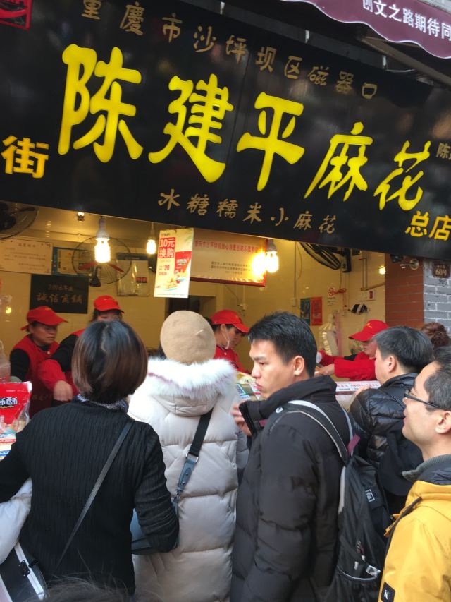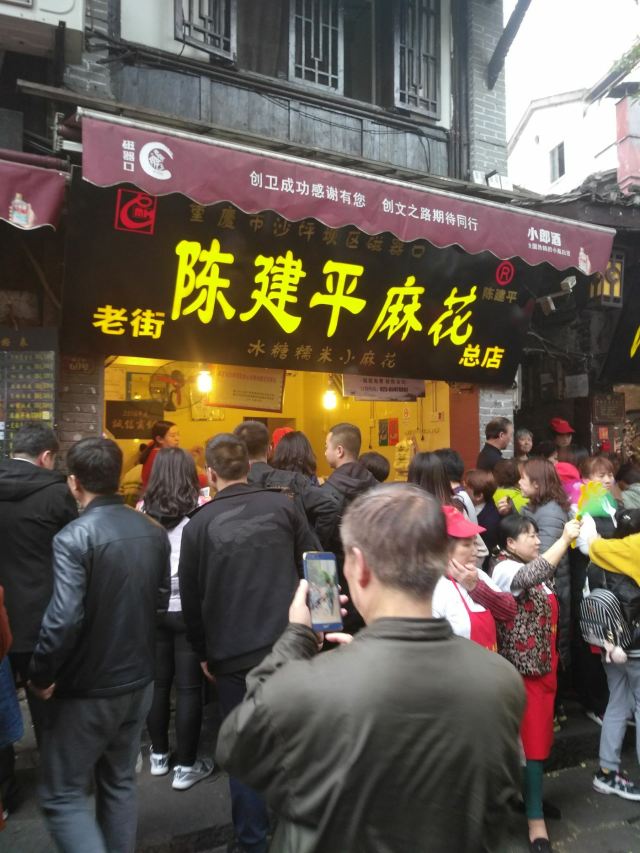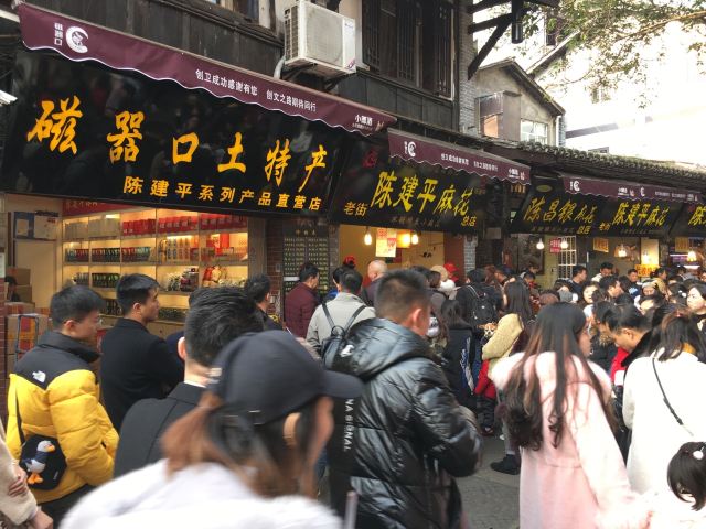 CHEN JIAN PING说起磁器口不要以为就是一个商业古镇,不要以为就是一些吃的,玩意儿的地方。这里是历史文化名街、重庆“新巴渝十二景”只要景点宝轮寺、钟家院、翰林院、博物馆、古码头、文昌宫、水观音等。 磁器口古镇的麻花好吃,陈建平这家的,什么时候来都是要排队的。冰糖的好吃,蜂蜜的更好吃。 【商品】好 【环境】古镇文化 【服务】棒