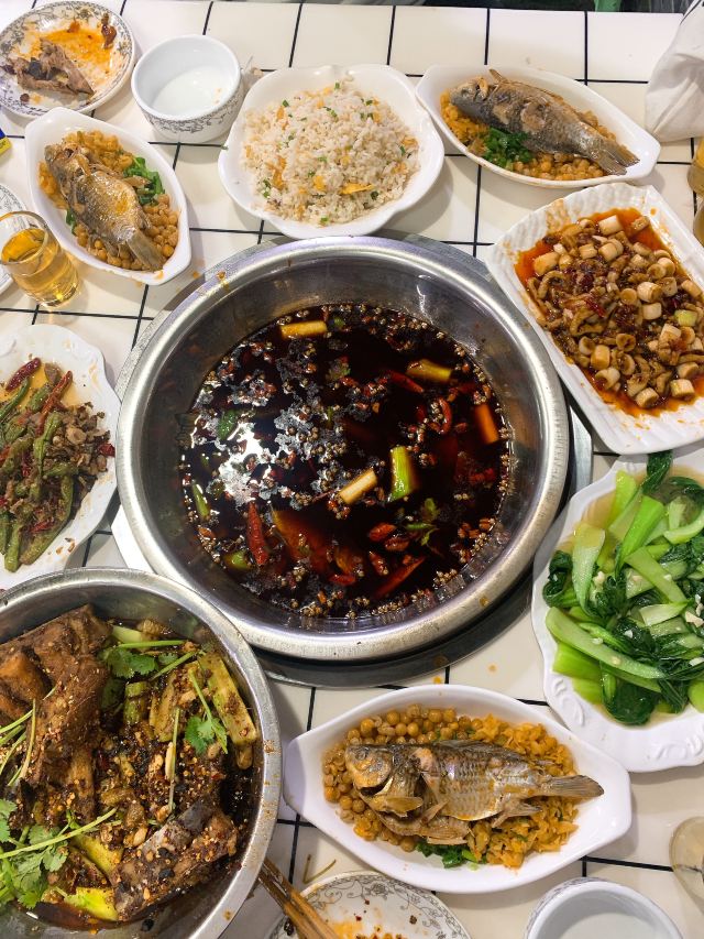 CengLao Yao Yu Zhuang (ZhangBin Road)环境还行,貌似防空洞之类的,去的那天,楼上不知道在打啥,非常大的撞击声,我一直担心洞会塌了。鱼是鲫鱼,建议不会吃鱼的小伙伴不要轻易尝试,很多的幼小的刺,刚开吃没多久就被刺卡住喉咙了,最后只能离开重庆回家以后去医院取刺。