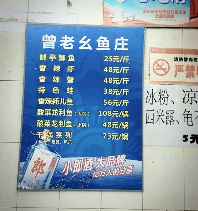 邮亭鲫鱼,蛋煎糍粑,干锅排骨,香辣耗儿鱼,糖醋排骨,印度飞饼,绿豆沙,虾子,蒜泥白肉卷,酸菜龙利鱼,烟熏舌子,活捉凤尾,凉拌蛙,香辣虾,汤圆,香辣蟹,水煮美蛙,干烧蛙,凉拌鲫鱼,鱼油碟,蒜泥白肉,耗儿鱼