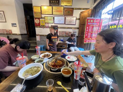 重庆第一天,到家父八十年前曾经生活过的沙坪坝、磁器口转转。离开地铁一号线磁器口车站,进了古镇,问临街第一家买麻花的店员,能否推荐一家古镇里好吃的店?对方告知,去吃古镇鸡杂。打开百度地图搜到了这个店,显示距离七百四十米,。一路走去,抗拒着身旁林林总总商家推销的诱惑,终于抵达这家鸡杂店,到了才知道原来是火锅!又是辣辣辣辣辣滴火锅🔥🍲🔥,进了川渝后就找不到不辣的店家哦。点了微微微微辣的鸡杂火锅!很好吃,很重庆👍
