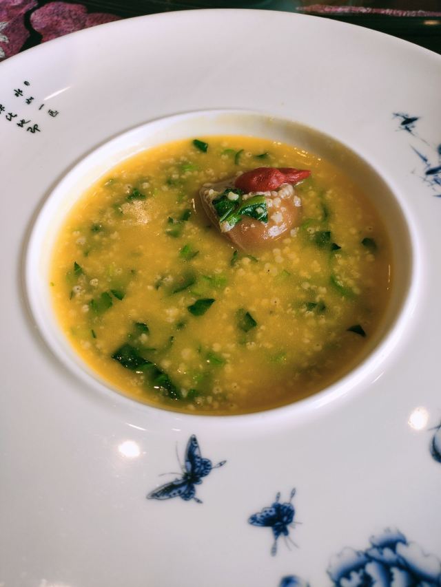 富贵花开石烹雪花牛肉,招牌墨鱼汁脆皮乳鸽,油浸小甲鱼,拿破仑,麻辣农场土鸡,浓汤三丝捞饭,鲜竹筒辽参,麻婆豆腐