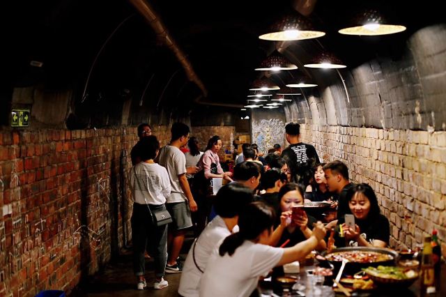 旅游度假洞洞里吃火锅(防空洞店)