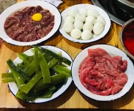 嫩牛肉,鲜毛肚,老肉片,藕片,老火锅,现炸酥肉,干贡菜,鲜鸭血,麻辣牛肉,绿色毛肚,卤肥肠,香菜肉圆,鲜鸭肠,虾滑