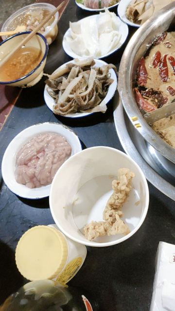 |现炸酥肉^不是小酥肉 是大酥肉 好大一块 可以直接吃 粘干碟 泡红油火锅 |鲜鸭血^还没火前先下下去 的确很嫩 |牛黄喉^还行吧 [薄荷]环境:老小区的火锅 在一个死胡同里啊~装修看图就知道了,应该还算是靠味道吸引客户吧[调皮] [服务铃]服务:很老的小区里的火锅,服务一般吧~吃火锅也算是自助 不需要什么服务[调皮]