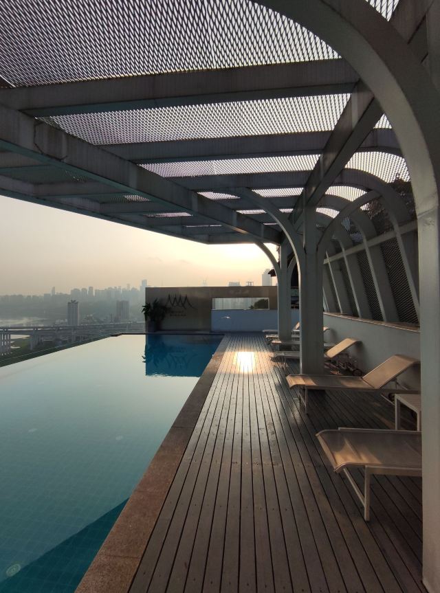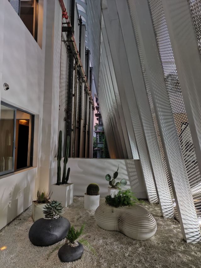 山鬼,确实很奇异的名字!才疏学浅,也不知道老板取这个名字的用意,或许来源于某一个文艺的典故,确实不曾考究!位置相对还是绕,偏倒谈不上,毕竟距离七星岗2号出口,步行也就5分钟,确实大隐于市的感觉!位于一厂影视基地中的家属楼中,到了门口,有点失望,感觉好怀旧的感觉,心想这么网红的地方,怎么会在此选址,随着进入楼梯中,渐渐的气氛出来了,很有艺术性质的外观和ins风格的装修,看得出来老板的品味和艺术感!餐厅位于酒店7口,入口在5楼,步行电梯均可,工作人员看见来人,也非常热情的刷卡开门!7楼餐厅是视野非常好,确实够得上网红打卡点,低调中不失奢华,装修风格非常好,套餐中餐品份量凑合,摆盘精致,口感嘛看个人喜好,谈不上非常惊艳,中上水平!可能自己还是属于不太喜欢西餐的人,所以对于这样的餐品,谈不上多么专业的评价和体会,只是觉得对重庆人的胃口,还些许陌生!本身餐厅确实很有网红元素,拍照非常可以,华灯初上,吃着美食,看着江景,确实甚是惬意,工作人员非常专业,仔细询问体验感和征求意见,可见经营十分用心!整体体验感觉很棒,值得推荐!