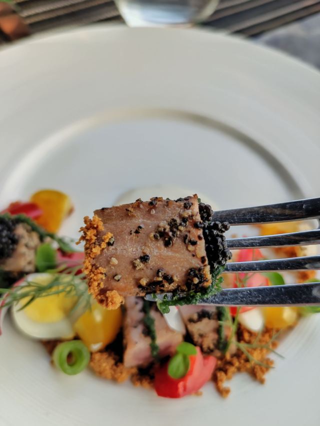 爱登山-菲菲哥山鬼,确实很奇异的名字!才疏学浅,也不知道老板取这个名字的用意,或许来源于某一个文艺的典故,确实不曾考究!位置相对还是绕,偏倒谈不上,毕竟距离七星岗2号出口,步行也就5分钟,确实大隐于市的感觉!位于一厂影视基地中的家属楼中,到了门口,有点失望,感觉好怀旧的感觉,心想这么网红的地方,怎么会在此选址,随着进入楼梯中,渐渐的气氛出来了,很有艺术性质的外观和ins风格的装修,看得出来老板的品味和艺术感!餐厅位于酒店7口,入口在5楼,步行电梯均可,工作人员看见来人,也非常热情的刷卡开门!7楼餐厅是视野非常好,确实够得上网红打卡点,低调中不失奢华,装修风格非常好,套餐中餐品份量凑合,摆盘精致,口感嘛看个人喜好,谈不上非常惊艳,中上水平!可能自己还是属于不太喜欢西餐的人,所以对于这样的餐品,谈不上多么专业的评价和体会,只是觉得对重庆人的胃口,还些许陌生!本身餐厅确实很有网红元素,拍照非常可以,华灯初上,吃着美食,看着江景,确实甚是惬意,工作人员非常专业,仔细询问体验感和征求意见,可见经营十分用心!整体体验感觉很棒,值得推荐!