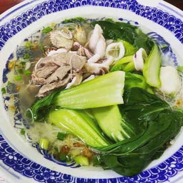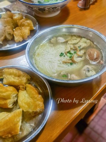 大的种类分为两种,一种是面,一种是粉,粉也就是捞化,而配菜也分为两大类,一种是牛肉海鲜、一种是猪肉海鲜,牛肉海鲜有两种,猪肉海鲜有7种,还是很丰富的,我点了套餐D,「捞化」也就是猪肉的,里面有老蛏,花蛤,鱿鱼,猪舌头,青菜,捞化粉很细,汤头很鲜「油条」对于北方人感觉有汤就要有干粮,油条感觉就是一种搭配 [薄荷]环境: 不大,在三坊七巷景区北面的街道 [服务铃]服务: 一般
