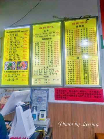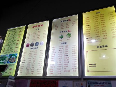 捞化,罗汉肉,鱿鱼,花蛤,油条,海蛎,米粉,蛏子,拌骨髓,辣椒油,牛肉,猪肝,卤小肠,卤大肠,拌青菜,豆干,粉干,拌面