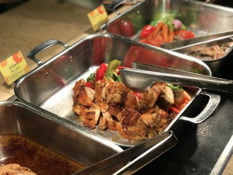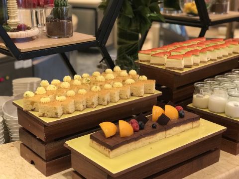 惠灵顿牛排,黑蒜烤生蚝,脏脏包,松饼,三文鱼,咖啡,现煎牛排,寿司,现烤焦糖草莓布丁,草莓双层蛋糕,肉酱意面,草莓派,草莓下午茶,芒果饭