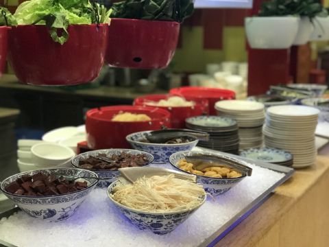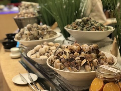 香格里拉大酒店|大堂酒廊 🌈还叫ez餐厅的时候去的,刚开始营业第一批就进去了,所有档口都很好拍,不用修图直出,所有对它家印象还蛮好的 档口的品类还是很齐全的,但是都不太突出,总体就平平,不过本身价格也不算贵 蔬菜沙拉🥗的区域很优秀了,生菜种类丰富,都很新鲜,沙拉酱也很多种,专业 甜品🍮的区域算是最优秀的,可选项非常多,虽然都一般般吃,但是可以一下打开童心 日料🇯🇵的区域最一般,生鱼片给的很小气,种类也少,寿司也没什么吸引力 捞化的档口就很有福州特色了