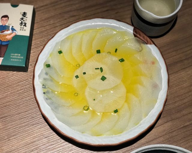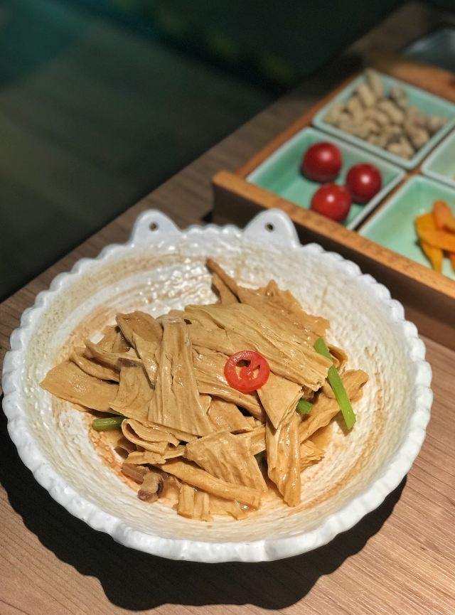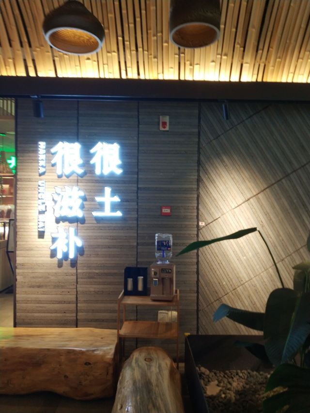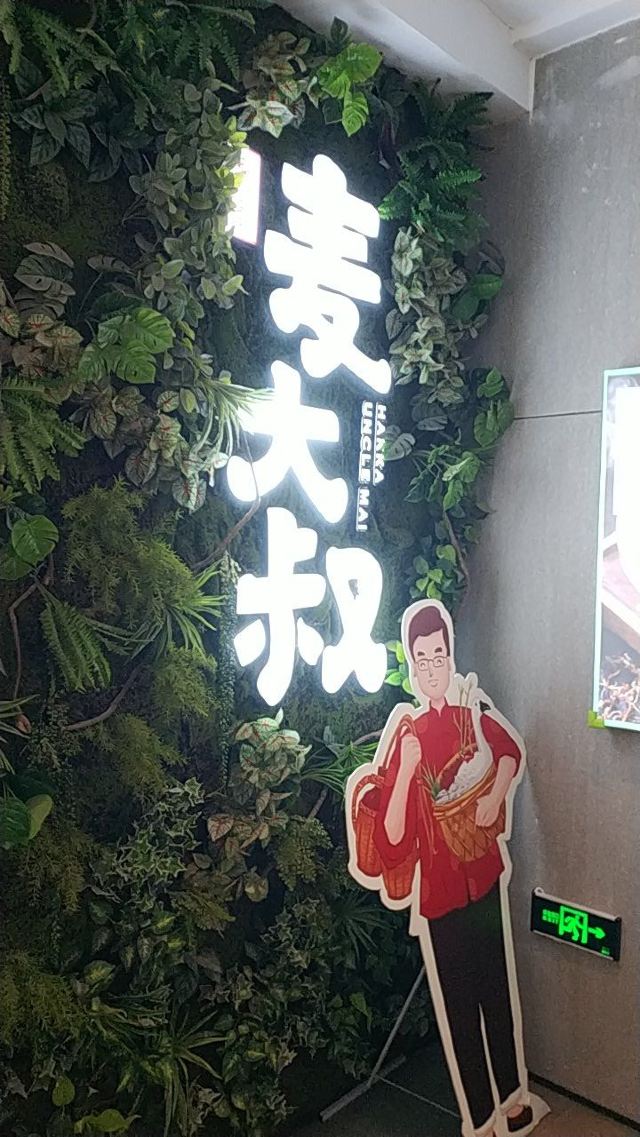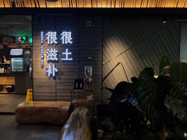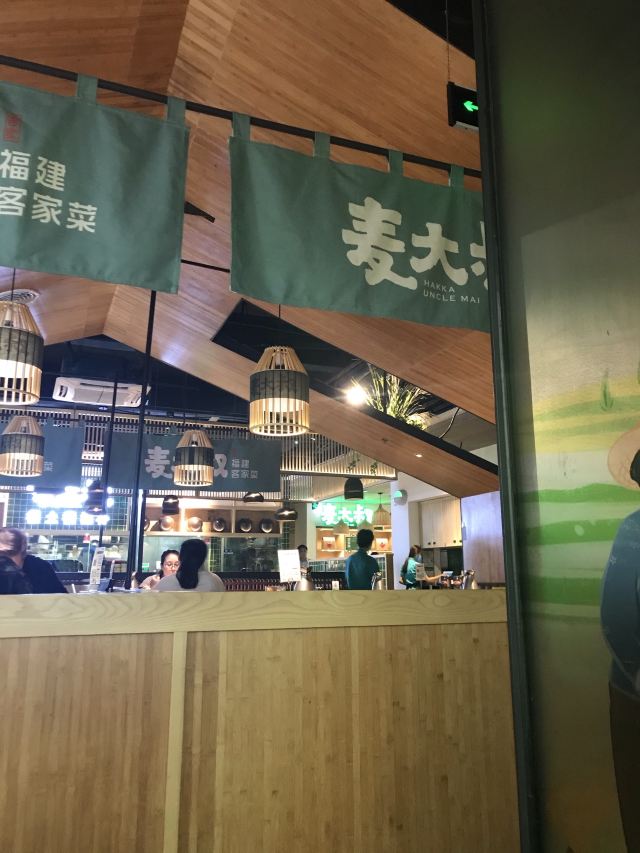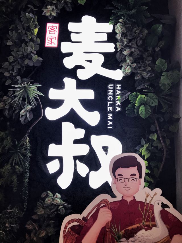 HAKKA UNCLE MAI麦大叔·福建客家菜 五四新华都店,从威美斯的招牌下进门上2楼 门口的等候区就给人一种亲近自然山水的感觉,店内采用原木艺风格,搭配暗暖的灯光设计,时尚而不失质感 终于找到一家贴近客家菜本味的餐厅了!外面那些把客家菜做得重油重咸的真的太迎合市场了,麦大叔的菜都很清淡,食材的原汁原味,让味蕾好好的放了个假 每桌都摆放着「餐前零食」,地瓜干酥脆微甜,连城花生虽然颗粒很小,但是挺香的,眼镜酥很甜,挺好吃的,这些都是麦大叔自产的 「干蒸河田土鸡」 ¥99/中 中份是半只鸡,鸡肉的口感很紧致,但又不算老,直接吃浓郁的酒香在口腔扩散开来,如果蘸上搭配的酱汁,鸡汤带来了更浓重的鸡的本味,鲜香味美 「飘香斑鱼」 ¥59 虽然看着像是水煮活鱼式的菜色,调味却意外的清爽,红油不辣只增添油香,斑鱼沐浴其中,却还保持着良好品质带来的鱼鲜味,很棒 「汀洲豆香原浆腐竹」 ¥39 继赣州之后,终于又吃上这种口感紧实、豆香浓郁的腐竹了,调味也非常棒 「鸡汁萝卜」 ¥19 虽然鸡汤的油看着厚厚的一层,却只是为了给清甜的白萝卜带来更好的鲜味,清爽度 「武夷山泉水炖土猪肉汤」 ¥19/例 囧麦大叔连武夷山矿泉水都有售,汤给人的感觉就是非常自然,一秒切换到山林中,很轻的调味却有很鲜的味道,土猪肉也很好吃! 服务上,招待倒是没有想象的积极,总体也就中规中矩 空调开得温度低风速大,菜很快就凉了,这点就不是很好