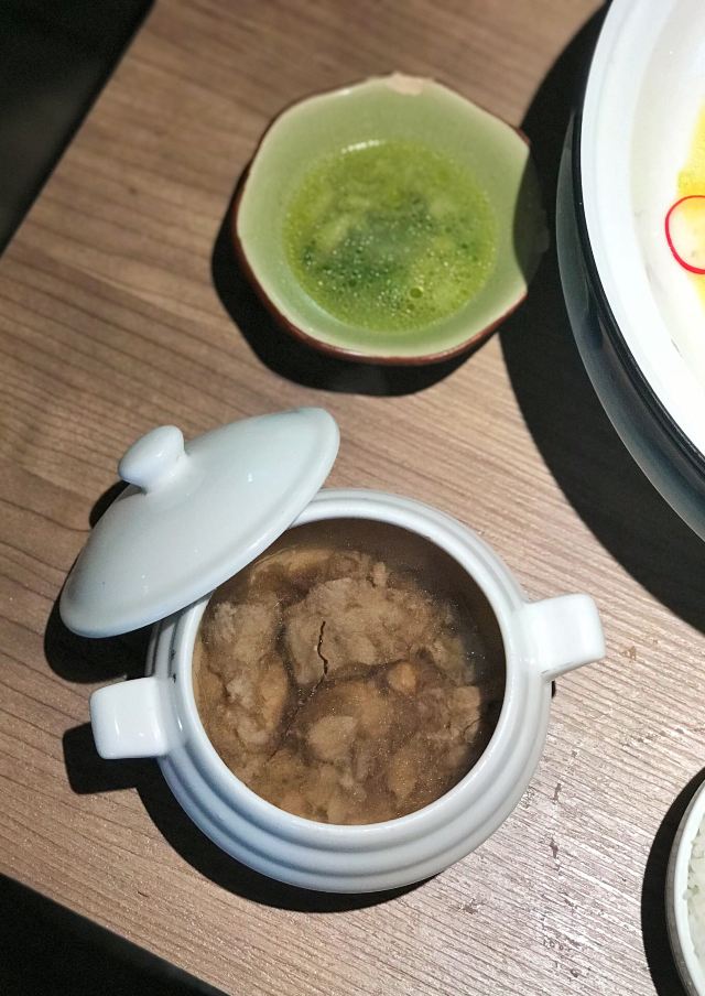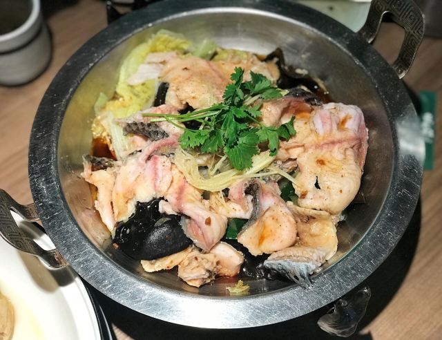大胖在路上麦大叔·福建客家菜 五四新华都店,从威美斯的招牌下进门上2楼 门口的等候区就给人一种亲近自然山水的感觉,店内采用原木艺风格,搭配暗暖的灯光设计,时尚而不失质感 终于找到一家贴近客家菜本味的餐厅了!外面那些把客家菜做得重油重咸的真的太迎合市场了,麦大叔的菜都很清淡,食材的原汁原味,让味蕾好好的放了个假 每桌都摆放着「餐前零食」,地瓜干酥脆微甜,连城花生虽然颗粒很小,但是挺香的,眼镜酥很甜,挺好吃的,这些都是麦大叔自产的 「干蒸河田土鸡」 ¥99/中 中份是半只鸡,鸡肉的口感很紧致,但又不算老,直接吃浓郁的酒香在口腔扩散开来,如果蘸上搭配的酱汁,鸡汤带来了更浓重的鸡的本味,鲜香味美 「飘香斑鱼」 ¥59 虽然看着像是水煮活鱼式的菜色,调味却意外的清爽,红油不辣只增添油香,斑鱼沐浴其中,却还保持着良好品质带来的鱼鲜味,很棒 「汀洲豆香原浆腐竹」 ¥39 继赣州之后,终于又吃上这种口感紧实、豆香浓郁的腐竹了,调味也非常棒 「鸡汁萝卜」 ¥19 虽然鸡汤的油看着厚厚的一层,却只是为了给清甜的白萝卜带来更好的鲜味,清爽度 「武夷山泉水炖土猪肉汤」 ¥19/例 囧麦大叔连武夷山矿泉水都有售,汤给人的感觉就是非常自然,一秒切换到山林中,很轻的调味却有很鲜的味道,土猪肉也很好吃! 服务上,招待倒是没有想象的积极,总体也就中规中矩 空调开得温度低风速大,菜很快就凉了,这点就不是很好