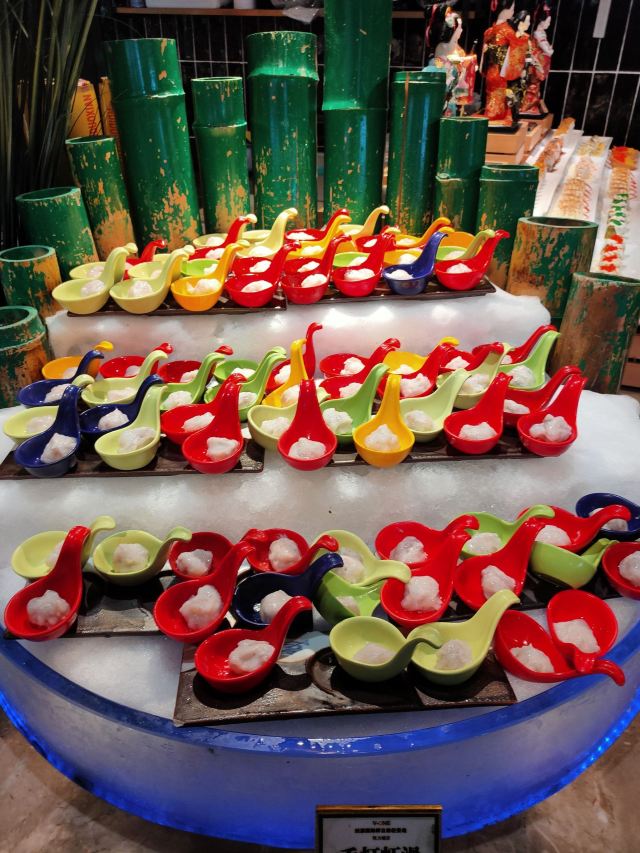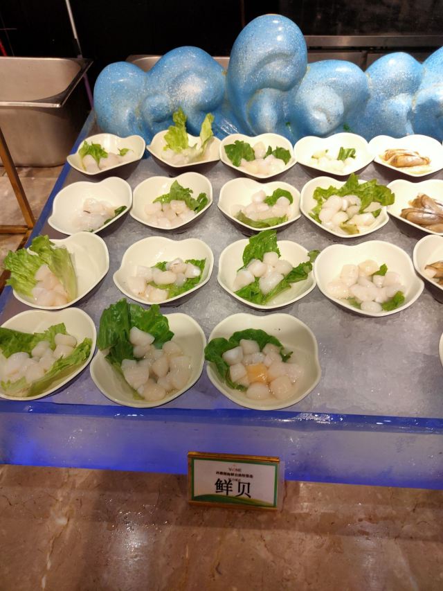 相当不错的自助餐。环境很舒服,装修金碧辉煌,地毯厚实,透过落地窗还能欣赏温泉公园的美景。餐点中西结合,菜式丰富。海鲜新鲜;生鱼片供应充足;炒菜很适合闽人口味;小糕点更是品种多而且色香味俱全。美中不足的是,饮料种类较少。