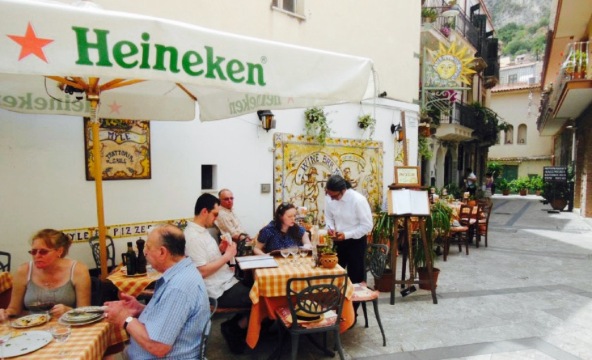 Il ristorante Myle e i Suoi Sapori si trova al centro di Taormina a due passi dal teatro greco. Vi potrai gustare la bontà della nostra cucina casereccia e la genuinità dei nostri vini, da noi prodotti nella cantina di Castelmola. Tra le nostre peculiarità, le nostre pizze, la cucina vegetariana e per celiaci. Si accettano carte di credito.