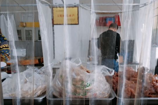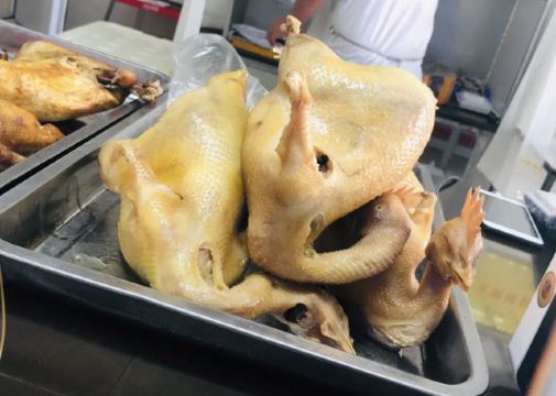 在箱子里,一个很大的店面。这家只做外带。来之前查灸料看到开封的美食,计划吃三样东西,灌汤包,杏仁茶,跟桶子鸡。叫了半只桶子鸡,用塑料纸先包了层,然后再用纸包了一层。老板切鸡包装很有一手,外皮向上包的像大块面包