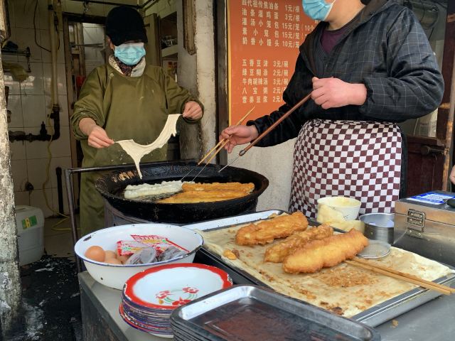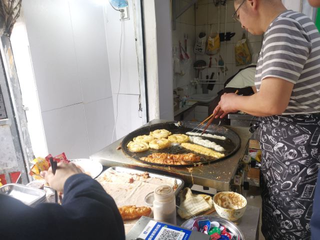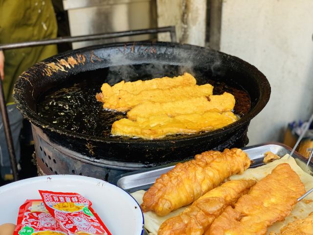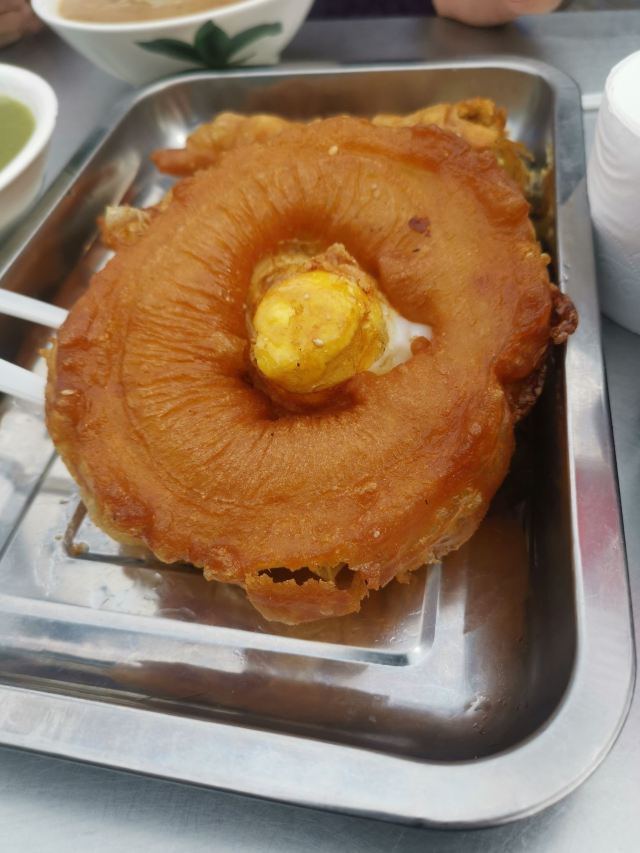 这里真的量大价优,一根又大又酥的油条只要一元钱。第一次吃到油条灌鸡蛋和鸡蛋圈。炸至快熟的油条,从中间划开,灌入调制好的鸡蛋液,复炸。口感酥脆的油条中带着糯糯的鸡蛋,别有风味。
