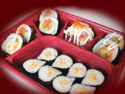 炙烤三文鱼,招牌给黑黄金双拼,黑牛寿司,招牌海苔卷,肉松手卷,招牌黄金脆,招牌鳗鱼卷,瑶柱培根卷,樱花之恋,招牌海苔寿司,樱花之恋卷寿司,蟹肉军舰,招牌手卷