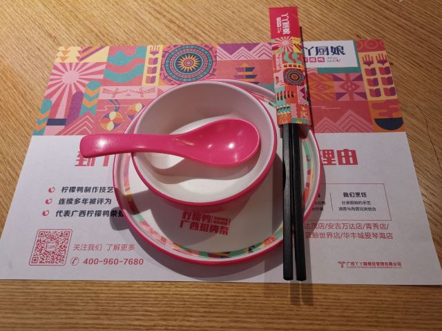 丫丫厨娘柠檬鸭时尚餐厅主营广西菜,内部装修有特色,整体光线偏暗。招牌柠檬鸭饭是桌桌必点的菜,配料足、味道够、口感好,里面的酸茭头味道也不错。餐厅在当地很热门,服务员态度不错,人均价格也很划算。