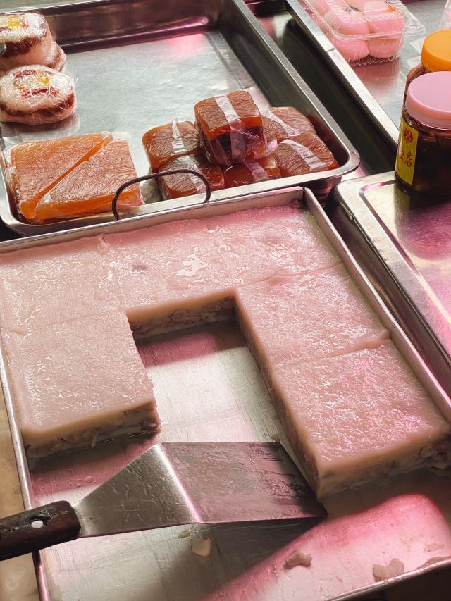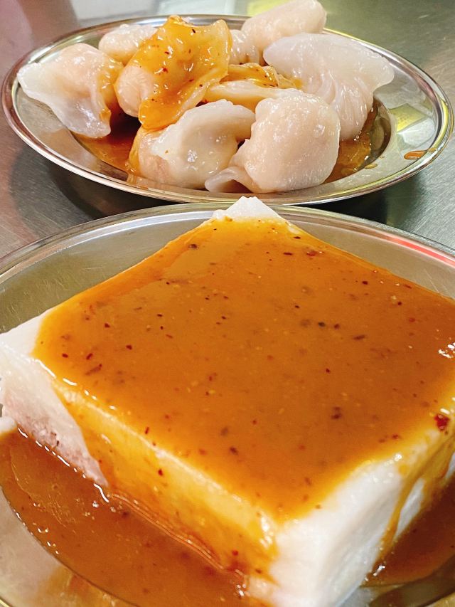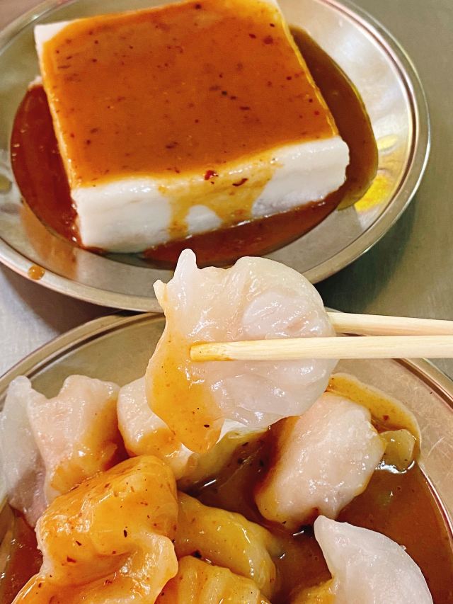 💟这家也是南宁必吃的一家店,是非常出名的粉虫店,他们家菜品价格实惠,还有卖手工粉虫、粉胶、卤鸡爪鸭翅等小吃。店面很小,只有几个座位可以坐,坐得有点不舒服,味道的话跟想象中的还是有一点差别,感觉没有想象中的那么好,算是当地的美食。 老友鲜肉炒粉虫 炒的很好吃,粉虫挺有嚼劲不烂,里面也有酸笋,味道还行; 粉饺 和虾饺的皮很像,里面馅很多,有大块的马蹄,这个最好吃; 芋头糕 很大一块,咸口的,吃多了会腻。