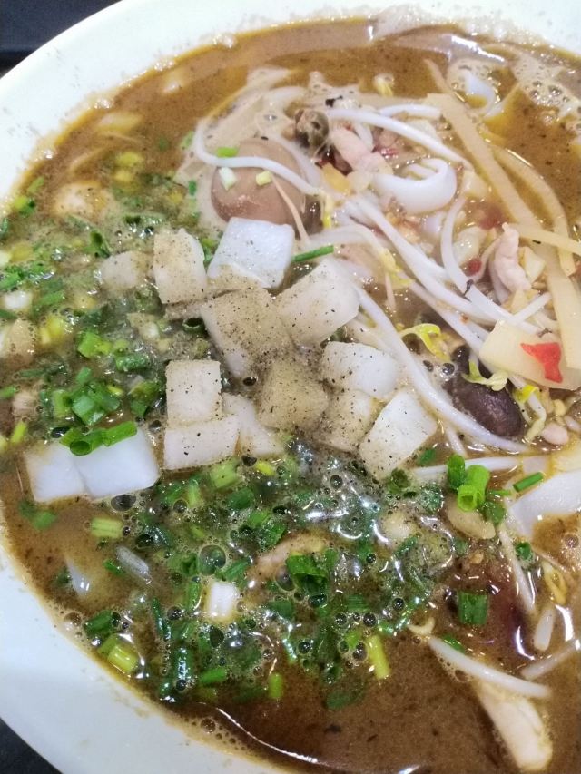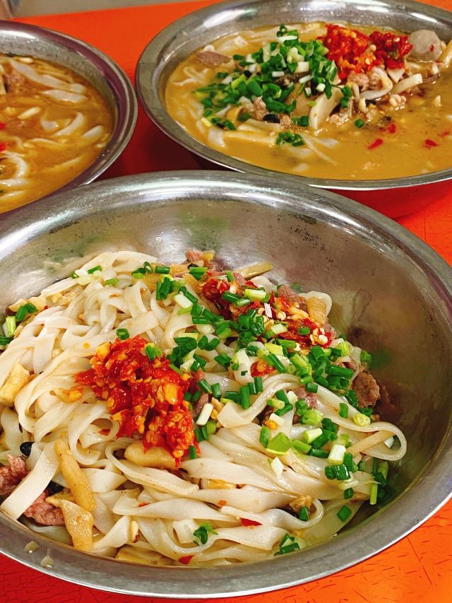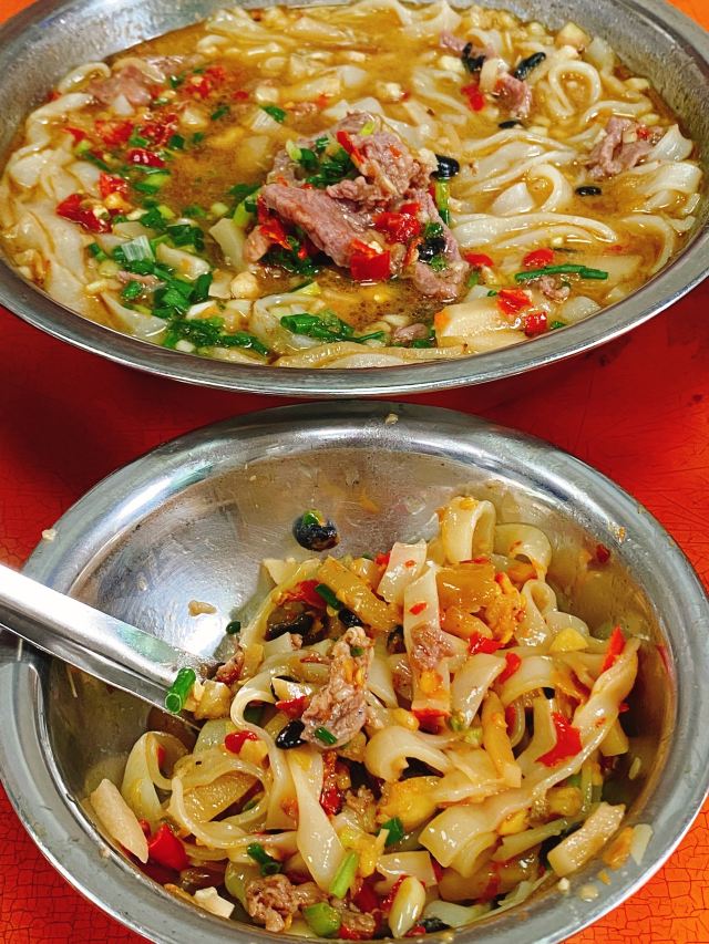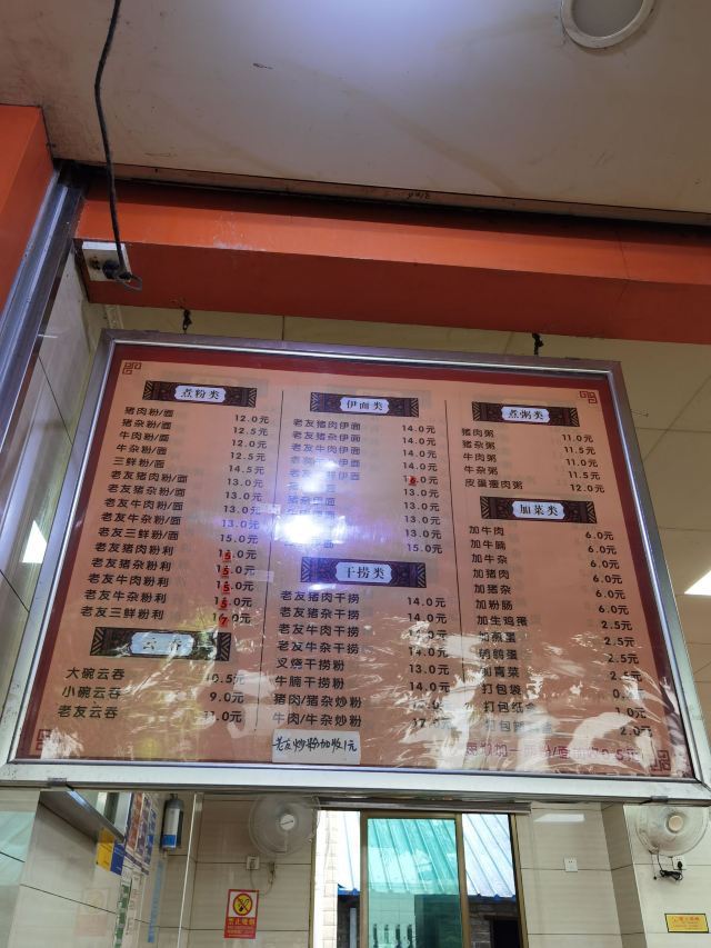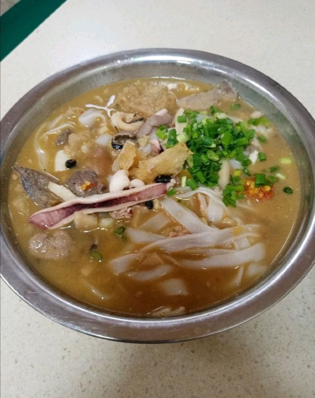 摩小亚这是在南宁吃的第一碗粉,没让我失望,挺特别口感,味道也很不错。 下飞机,到了酒店,火速放好行李,打车到了这家早就收藏好的老牌粉店。 正当饭点,生意很好,多是本地人来这里吃午饭的。 点单,拿着小票去出餐口放小票,等着自己的那碗粉出锅,然后大快朵颐,吃完赶紧让座。 【老友牛肉粉】15元 【老友三鲜粉】17元 我吃的牛肉粉,导哥吃的三鲜粉。其实味道差不多,只是上面的臊子不一样而已。 我更喜欢牛肉的,但是呢三鲜的感觉食材很丰富,看个人喜好吧。 南宁的粉比较特别,宽扁型,和我们成都的宽挂面感觉很像,但是吃起来口感很棒的。 滑溜细腻,哧溜哧溜的大口吸入,很是爽滑过瘾。 有辣椒可以自己加,但是他们 这边的辣椒里都是好多生蒜哦,不吃蒜的我望而却步呀。 恩,性价比很高,多么大一碗,份量很足哒! 总体来说南宁的物价偏低哈。