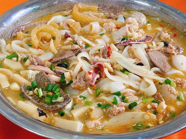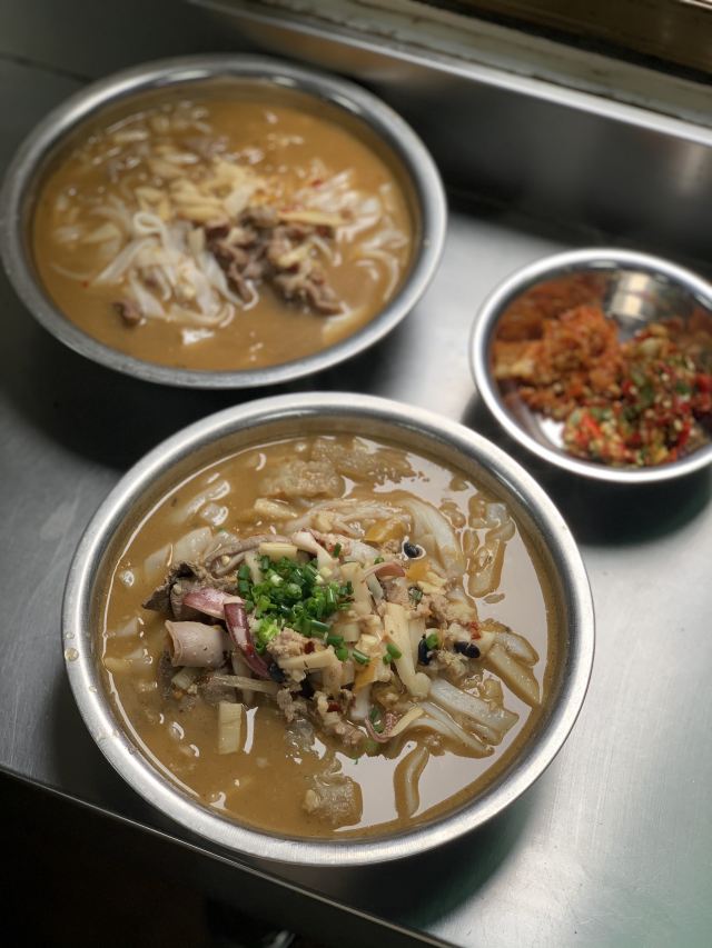 南宁的老牌老友粉店,经常去的时候都要排队。配料里酸笋的滋味也许外地人吃不惯,口味有些重,但吃起来确实鲜,酸辣可口。牛肉粉、猪杂粉也不错,浇料都是现炒现做,口味地道。