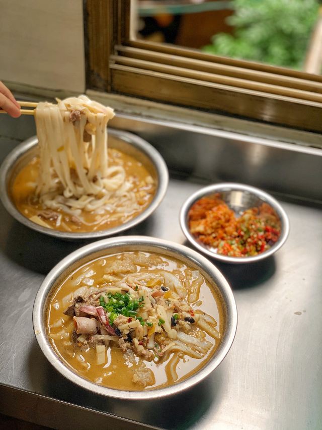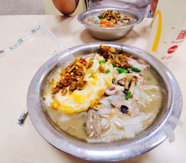 Shu Ji LaoYouFen (QiXing Road)作为小吃整体推荐,点了老友三鲜(有猪肝,猪肉,皮肚,鱿鱼,鹌鹑蛋)鱿鱼嚼不动。刚端上来味道很不好闻,好像笋的味道,不太好。加了香葱和辣椒就好多了。