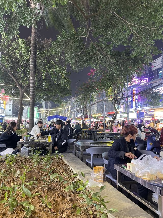 白天安静的街道,到了晚上摇身一变成喧闹小吃街,是南宁特有的夜市文化。炎热的天气在傍晚有了一丝凉意,吹散了白天的热气,吹来一个个忙碌的小摊位。