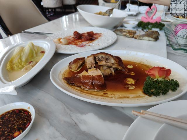 【环境】不错,晚上来看不出有多高白天应该好些 【口味】可以。点了个柠檬鸭全是骨头,味道不错就是没肉,我吃了块鸭脖子,其他的客人都没吃 【服务】服务员要反馈我说鸭子都是骨头他们也没有解释为什么。若果这是餐厅的标准建议不要吃柠檬鸭