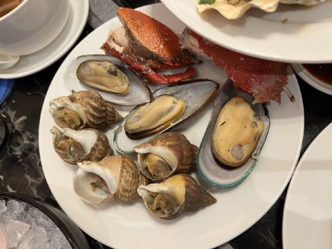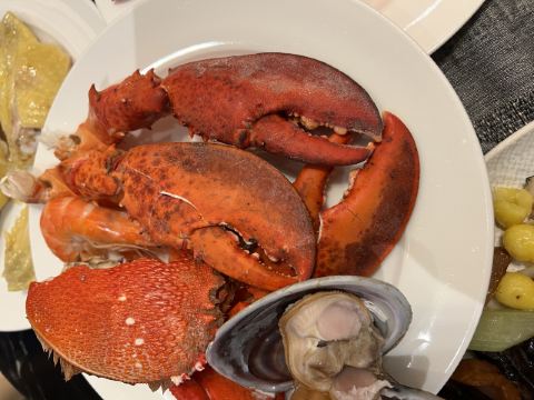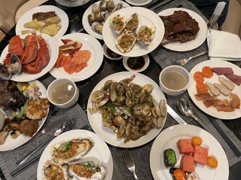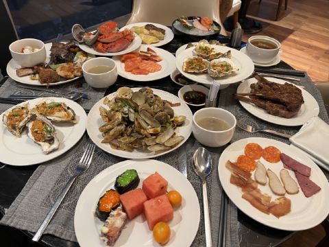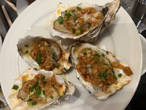 现烤蒜蓉生蚝,爱尔兰生蚝刺身,肉眼牛扒,羊排,烤牛肉,蒜蓉粉丝蒸扇贝