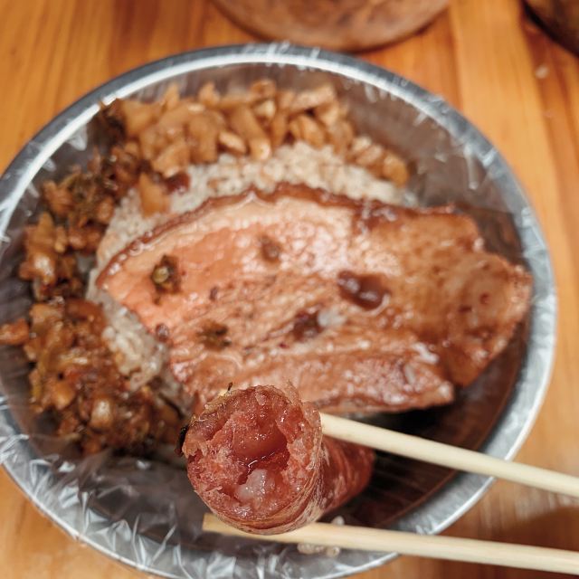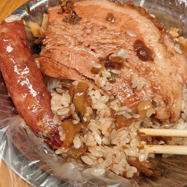 扣肉香肠糯米饭,香肠糯米饭,扣肉糯米饭,素糯米饭,超薄扣肉,山楂乌梅,萝卜干,半肥瘦,小菜,绿豆沙,木薯羹,酸豆角,超正的扣肉饭