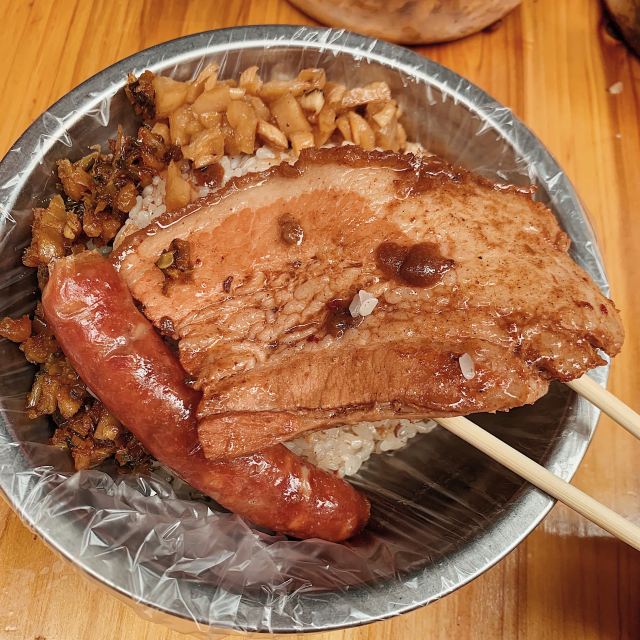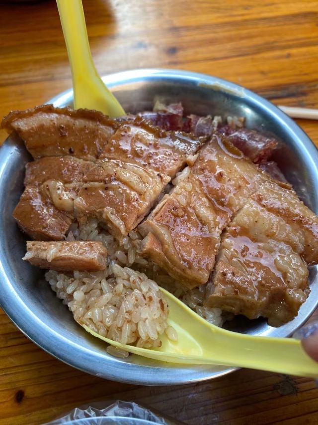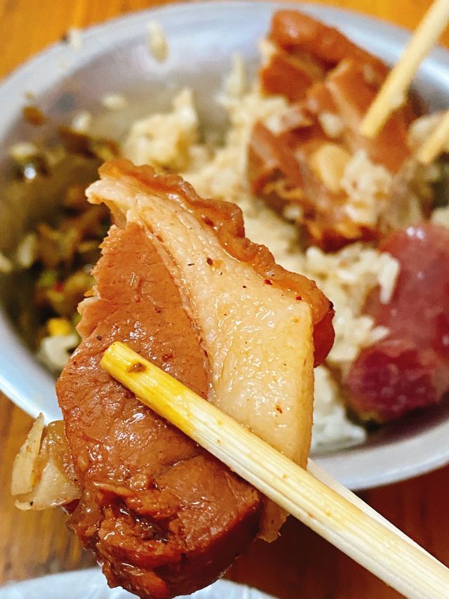 Grandma Liang's 20-Year-Old Traditional Braised Pork with Glutinous Rice这家糯米饭是我们此行南宁,最难忘也最怀念的一餐。 如果说,台北让我们眷念的是牛肉面和卤肉饭,那南宁就是这家梁阿婆扣肉糯米饭。 虽说南宁的糯米饭很出名,但是糯米饭真的吃这家就够,其他店只是用来论证我的这个观点的。 早点去,过了下午卖完就收摊,阿婆带着家人开了这个巷子里的小铺子,很简单很简陋。 准确的说它不算是是个铺面,就是一个路边摊而已,干干净净,座位不多,大家都是吃完就走,迎来一波又一波食客。 建议点一份10元的扣肉糯米饭,然后加一根5元的广味香肠,那样就完美了。 扣肉肥瘦刚好,软糯鲜美,厚切的口感特别赞,女孩子吃完这一片也是轻松的; 香肠略微回甜,嚼起来干香可口,和扣肉的搭配会更和谐哦; 糯米饭真的是每一颗都在放光,上桌前浇的那一勺扣肉酱汁,真的是点睛之笔,配上桌上的秘制咸菜,吃完一碗真的会想来多几碗。 旁边吃饭的大叔都在打趣,说专程跑很远过来吃这个卤肉饭,真想把阿婆的女儿娶回家,那样就可以天天在家吃到好吃的扣肉饭了。 哈哈哈,真是好主意。 早点去哦,卖完就收摊哦!