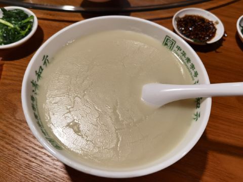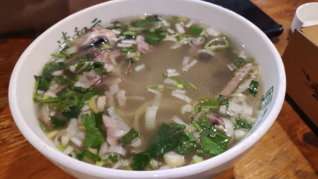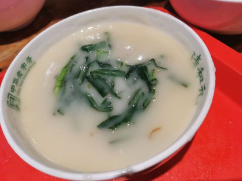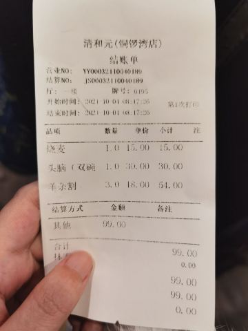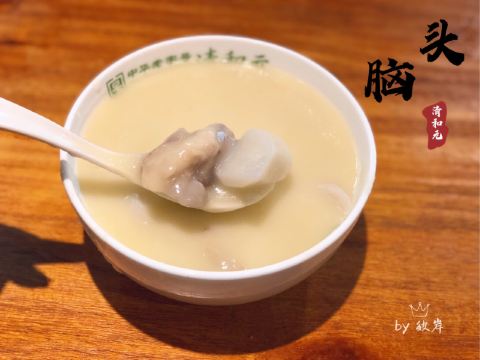 angel洁_8891之前看盗月社来这里吃过头脑,所以太原之行最后一天的早上,我们也特地来打卡了。 位置:太原市迎泽区南肖墙铜锣湾a座21~26号 交通:公交车坐到柳北站,然后步行过去。 清和元早上6:30开始营业,据说7点多就开始排队了,所以我们不到7点到的,面积很大,不过当时空的桌子已经不多了。因为担心可能不太能接受这个味道,一会儿还会回酒店吃早饭,所以我们只点了一份单人份的头脑和一个帽合。 交钱后拿着单子去旁边儿排队领,然后自己端到位置,头脑搭配一小点儿韭菜。墙上有吃的说明,把醋倒在韭菜里,拌匀后把韭菜放到头脑里搅匀。小伙伴儿吃不了羊肉,单吃头脑的时候,因为有黄酒和醪糟压着羊肉,味道很淡,还可以吃下去,加了醋以后,羊肉味儿会变浓。我直接喝,头脑感觉太苦了,真的是太苦了,难以喝下去。之后添加了醋和韭菜以后苦味儿被遮住了一些,感觉好了一点。 整体感觉头脑虽然是很营养很补,但真的不是所有人都能享受[尴尬]