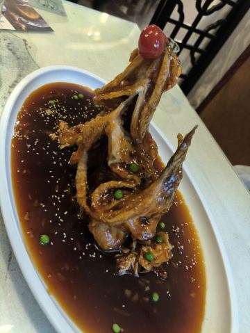 来太原旅游就想吃个当地特色美食,正好搜到酒店附近这家中正天街三楼的老太原菜馆,落座后看到菜单一下子就被晋商代表菜非遗唐王醋鱼给吸引住了,虽然贵食材为金桂鱼本身就贵,既然来了还是要尝一尝的,果然吃着不错,还有糖醋丸子等其它菜品都不错,尝到了太原美食值。