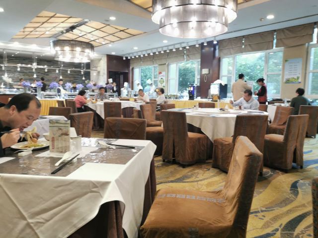 这家五星级宾馆的餐厅出品的食物超赞,新鲜、味道好,色香味俱全,而且价钱不贵,性价比很高。环境更是一流的了。服务员的服务非常到位的。