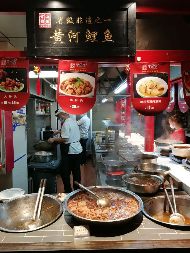 山西会馆主打晋菜,大面积开放式的厨房让人很直观的点菜、欣赏大厨们精湛的烹饪技艺。跑男也曾经到过这里录制节目,更是增添了餐厅的人气。