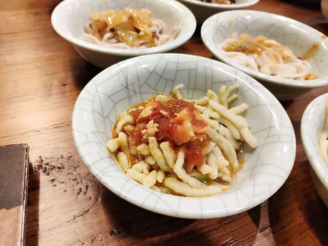 灌肠,一套4种的面,莜面,刀削面,现做豆腐,铜锅,烤羊排,豆腐,皇城豆腐,碗托,面食,炸糕,猫耳朵,醋桂鱼,过油肉,铜火锅,糖醋丸子,烤栳栳,山西过油肉,一套4种的粗粮面,腊八蒜炒杏鲍菇,保健醋,砂锅鱼头,炸素丸子,一套4种的细粮面,拔烂子,大同生态烤羊排,平遥牛肉,莜面凉菜,代县熬黄河大鲤鱼,老卤豆腐,渤海鲍鱼