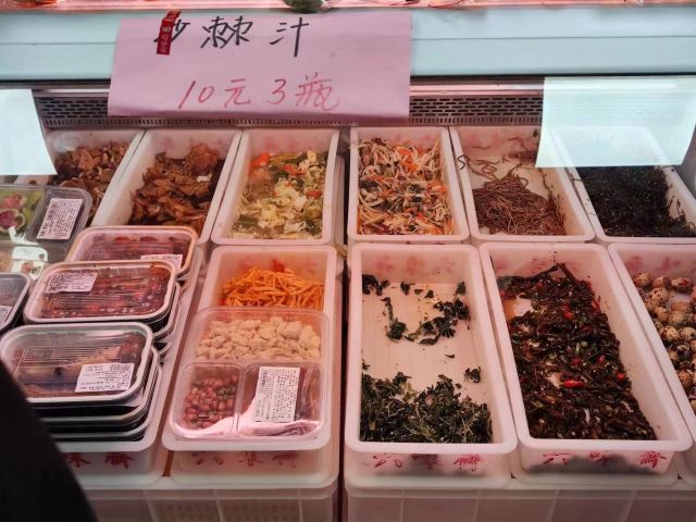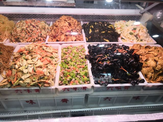 灌肠,羊汤,焖面,羊肉串,酱肉,丸子汤,甜辣豆腐干,牛肚,栲栳栳,酱肘花,卤猪蹄,蛋卷,卤牛肉,六味斋酱肉,包子,面皮