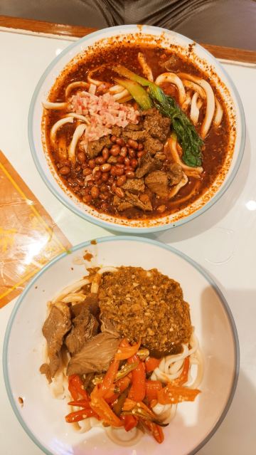 太原的新晋网红面馆“杨记跷脚牛肉面”,这个面真是没有一定的勇气千万别碰,味道虽超好,但每吃一口都要升天一次。幸亏点的只是属于中辣的双椒,如果爆辣和冒烟懒吃完,你绝对就是“英雄”!!!