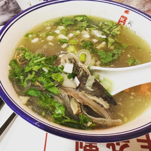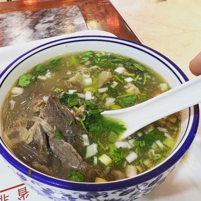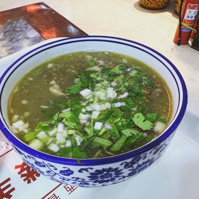 是太原一家比较老的羊肉汤馆子,羊肉汤上飘着一层羊油,加上陈醋、辣椒、胡椒粉等调味,又浓又香;烧饼酥酥的,掰开泡在羊汤里,味道和谐完美;羊杂割分了大盘、小盘,羊味儿十足。
