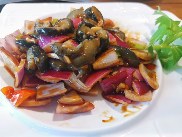 海三鲜锅贴,鲅鱼丸子汤,风味茄子,温拌鸟贝,三鲜水饺,老醋蛰头,菠萝凤尾虾,温拌海参,海肠捞饭,武大郎炊饼,鲅鱼水饺,三鲜锅贴,素馅锅贴,铁板煎舌头鱼,葱姜炒蟹,京酱菠菜,酱烧笔管鱼,大鱼宴,大虾水饺,海参