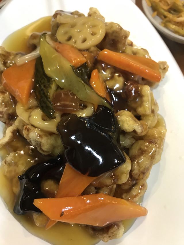 三鲜干炸酱面,辣海鲜面,糖醋肉,凉菜三品,干烹鸡,炸春卷,海鲜炒码面,小菜,海鲜炸酱面,海鲜炒玛面,虾仁炒饭