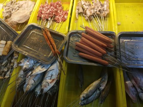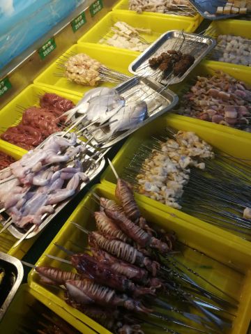 烧烤的确不错,烤海肠,烤鸟贝是他家的特色,羊肉串一般,炖的海鱼还行,海鲜很新鲜,晚上吃个海鲜烧烤,喝个啤酒瓶,吹个海风,爽!