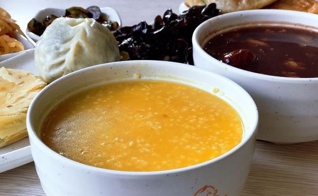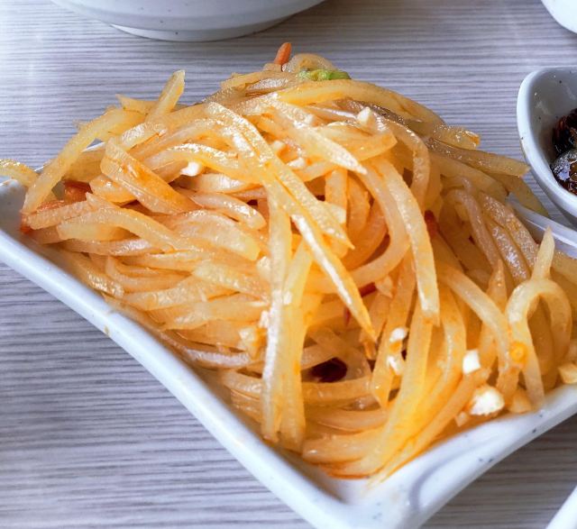 景仁和神龟几乎瓜分了威海的快餐市场, 菜品类似程度惊人相似, 而西北山路这家景仁, 地理位置优越到出酒店就到, 所以早餐选在这里。 「八宝粥」今天出奇的优秀, 跟之前外卖的口感完全不一样, 花生香甜米粒劲道, 一碗下肚竟意犹未尽…… 「山苜楂包子」回青岛后才反过味儿来, 为什么没有打包回来孝敬老妈, 简直就是巴结中老年妇女的利器呀, 菜馅儿满满滋味足, 皮薄馅大健康营养。 「猪肉馅饼」「牛肉馅饼」之前吃伤了, 评价不中肯了,放弃。 「炝拌土豆丝」「老醋木耳」这种必点, 搭配个小粥一喝我的天, 一天元气满满…… 建议6点前菜品上齐, 威海这个天早上4点半就大亮, 晚9点马路上就没人了, 请照顾早睡早起的人儿~~