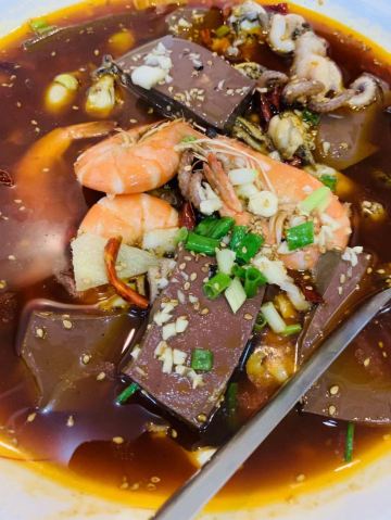 十月一来蓬莱旅游,这几天刮风有点冷,点了个毛血旺和热汤热乎热乎,来蓬莱这几天吃了很多家,就这家让我很满意,环境好,停车方便,服务也很周到,老板和服务员都很热情,让我感到很温暖,蓬莱小面很正宗,鲅鱼饺子个也很大,菜品很全,特色菜,海鲜都有,还有青岛原浆啤酒,酒水齐全,吃的很饱,来蓬莱吃的最满意的一家店。