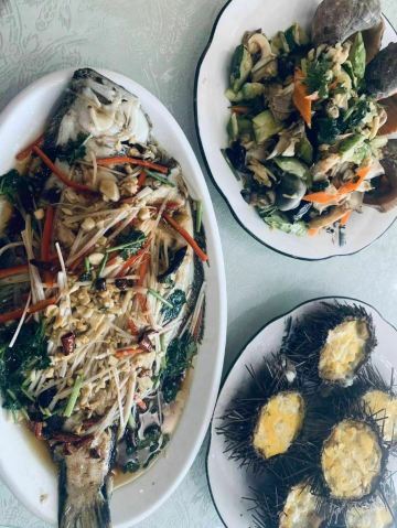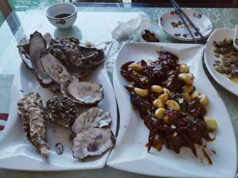 来蓬莱7天旅店老板推荐的,走了近15分钟,店面还可以,菜品不错,份量好多,也看出了北方人的豪爽,我们9个人8样菜居然没吃完,还打包回来,海鲜味道不错,还商量离开蓬莱之前再去一次。