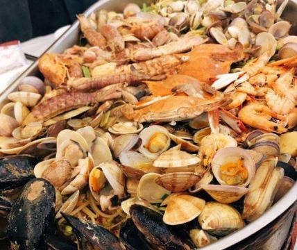 口味还不错,这是对本人说的。不能吃辣的人就算了,口味清淡的也算了。来的人比较多,上菜的速度有点慢,也不分先后顺序,先来菜还没有上,后来的都已经上了。点的海鲜拼盘,贝类有很多的空壳,和在大排档比质次价高。看来以后也不能太相信点评。
