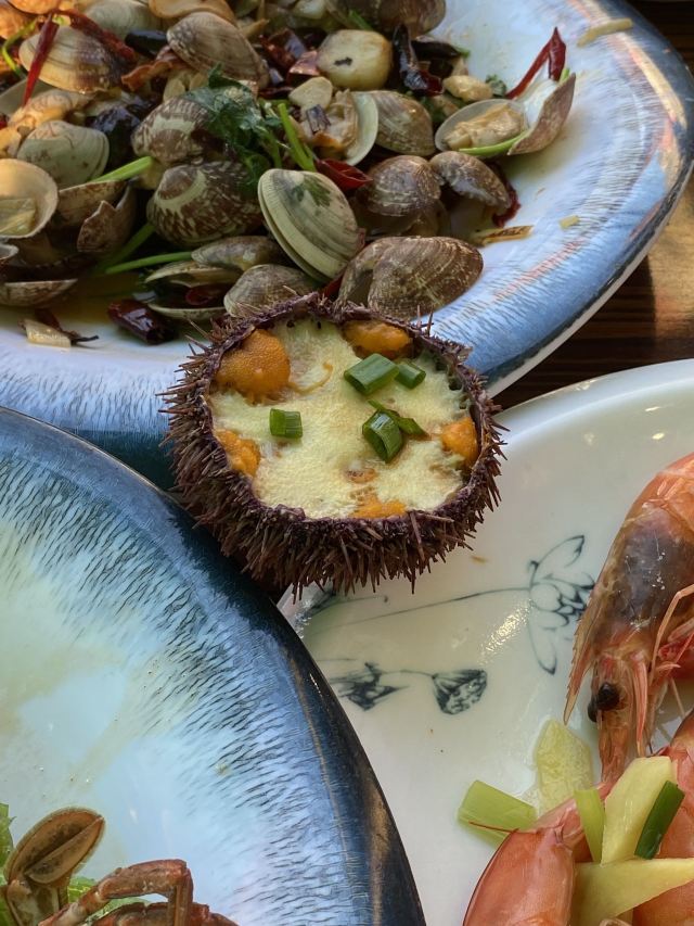 超级火爆的当地餐厅,海鲜都是现选现做的非常新鲜,海肠捞饭绝对不可错过。
